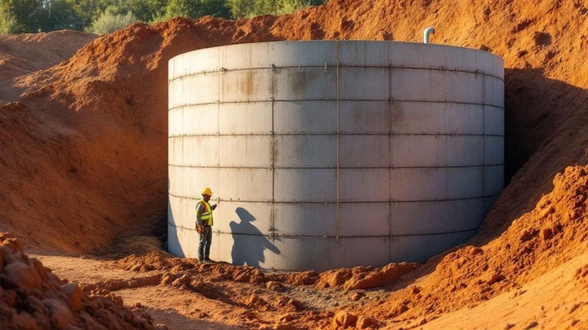 Don’t overlook the pipe trenches. These extend outward from your tank for inlet and outlet connections. Each trench adds to your total excavation area. Plan these routes carefully to avoid obstacles like utility lines or tree roots.